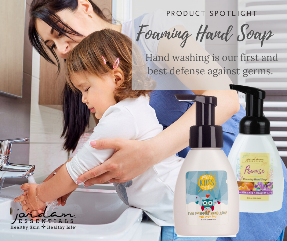 Start by placing a bottle of our foaming hand soap at each sink in your house. Jordan Essentials Foaming Hand Soap is available in a variety of fragrances and essential oils to please everyone in your home. Try setting out a fresh bottle of hand soap in the restroom at work to promote healthy hand washing throughout the office too.